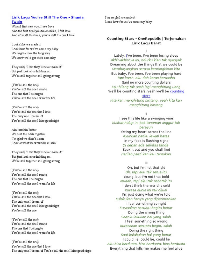 Daftar Isi Terjemahan Lirik Lagu Barat Indonesia Lengkap